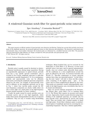 Removal of Moiré Patterns in Frequency Domain Author: Khanjan Pandya1 Affiliation: Assistant Professor, Department of Mathematics, 3.1.3 Gaussian Notch Filter: It has the expression of the form: … (8) The corresponding Gaussian notch filter of order n is given by: ... Retrieve Doc